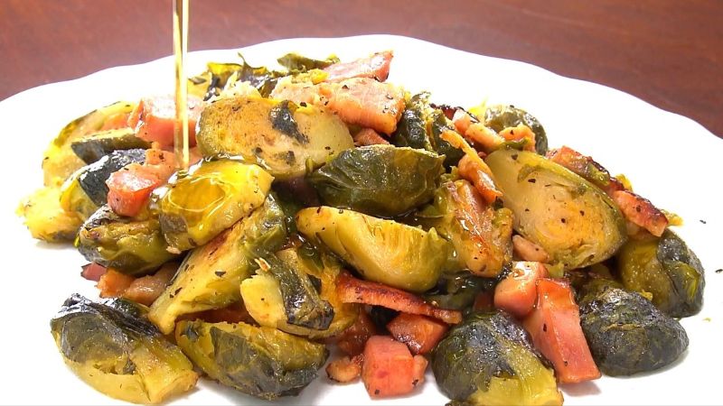 おいしい! 炒め物だと、オリーブオイルによって芽キャベツの甘みや、ベーコンのうま味が引き立ちますね