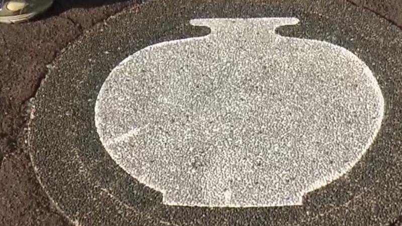 森山焼の陶器が有名なので、歩道に森山焼をイメージした絵が施されていました。
