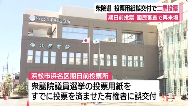浜名区の選挙管理委員会によりますと、2月1日、すでに衆議院議員選挙の投票を済ませていた有権者に誤って投票用紙を交付しました。