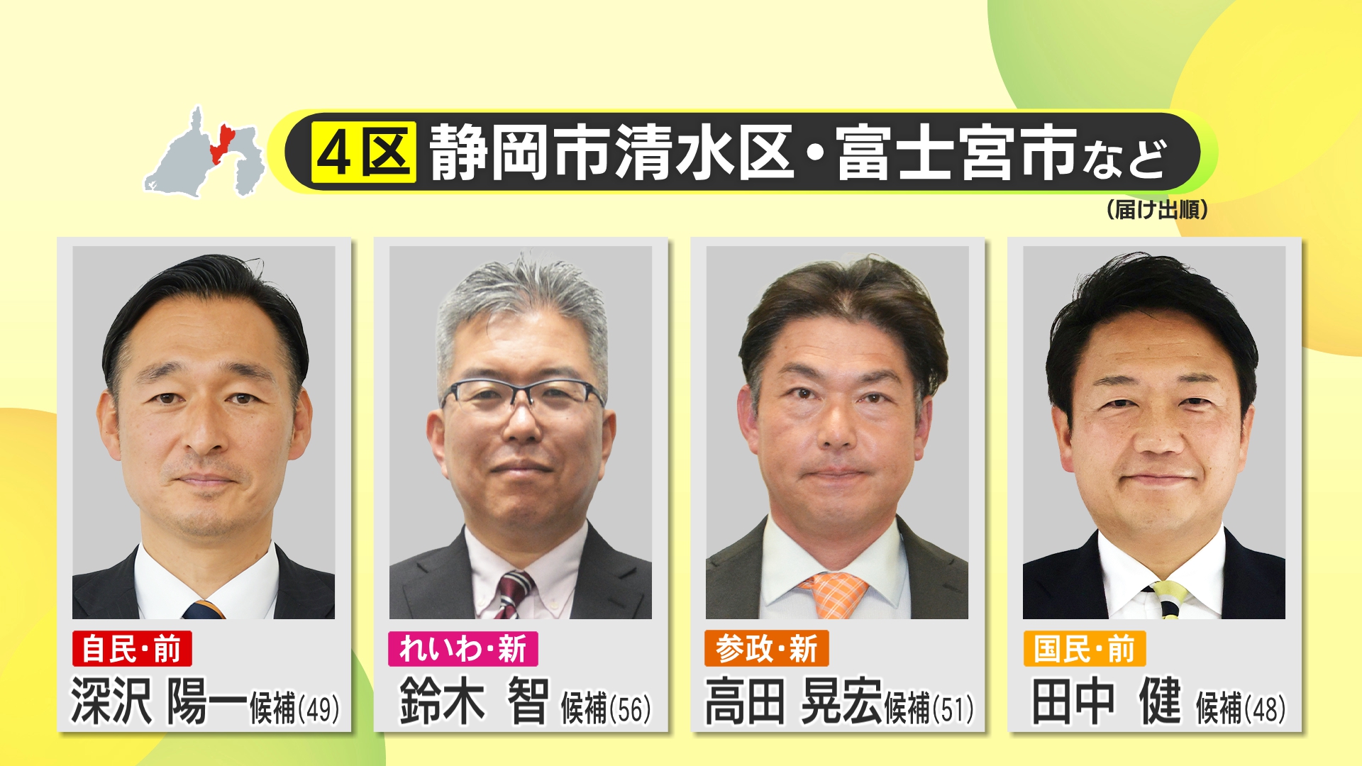 次に前回選では国民民主党の田中さんが自民党の深澤さんとの一騎打ちを制した静岡4区は?