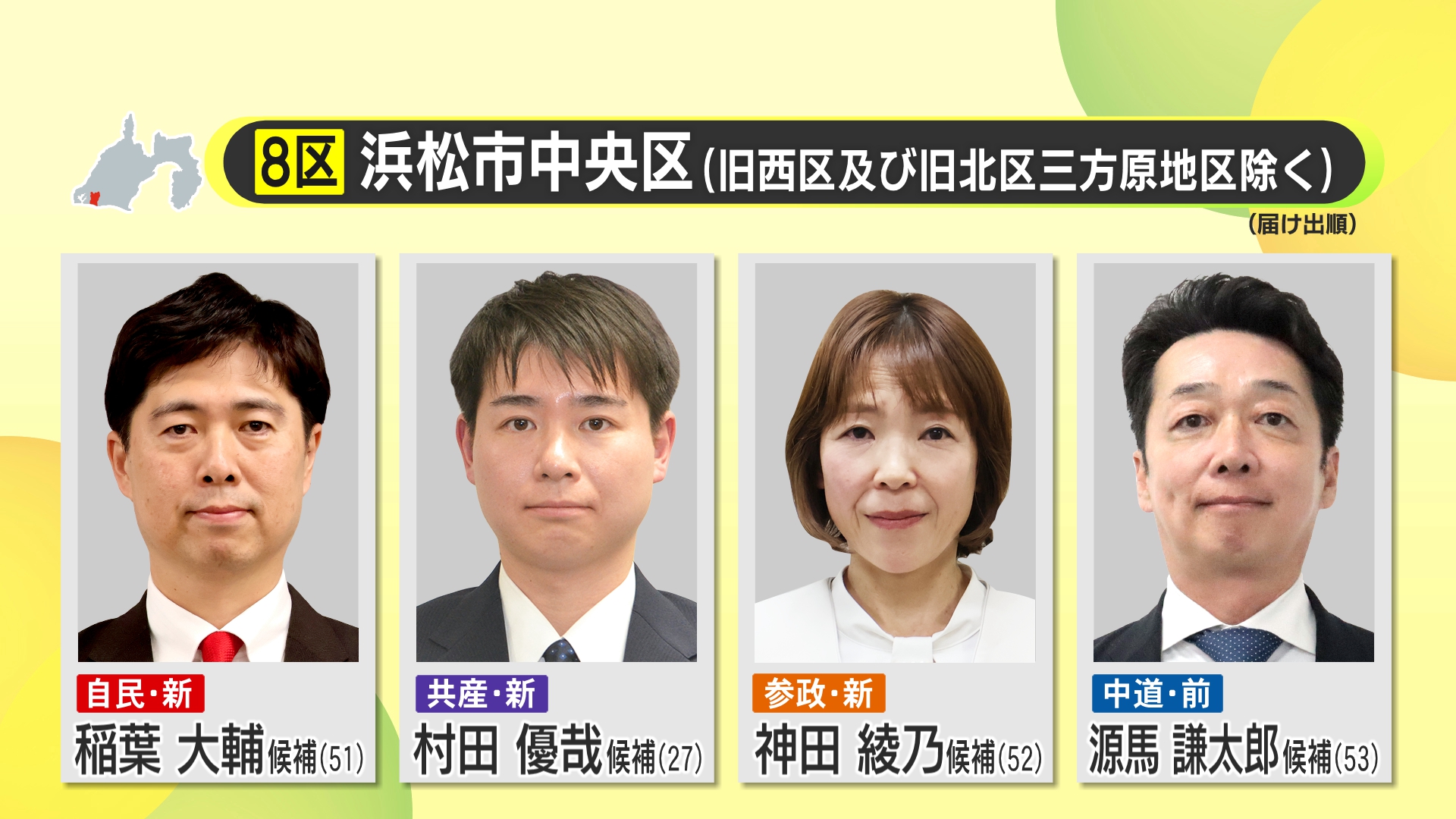 最後に前回選では投票が締め切られると同時に報道各社が中道改革連合の源馬さんに当選確実の一報を出した静岡8区です。