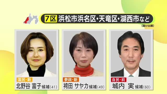 今週日曜日に投開票が行われる衆議院議員選挙。2月2日は静岡県浜松市浜名区や天竜区などを選挙区とする、静岡7区に立候補している3人の主張や活動を紹介します。