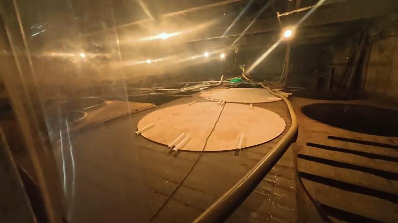 続いてビニールで仕切られた蔵に入ると、大きな木のフタが目に入りました。