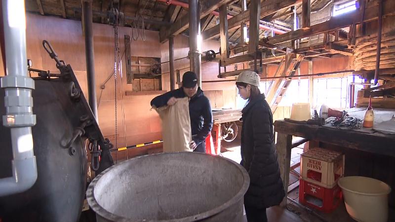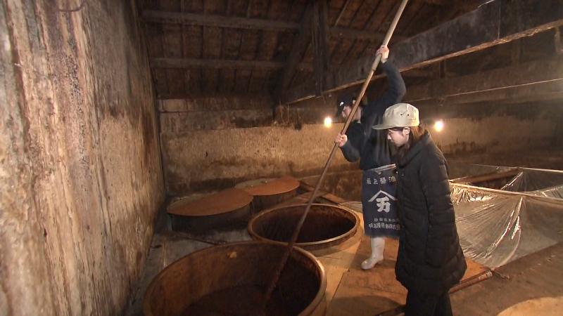 寒い時期に仕込みをするというしょうゆ造り。その現場を見学させてもらいました。一般の見学も受け付けていて、事前に予約が必要です。