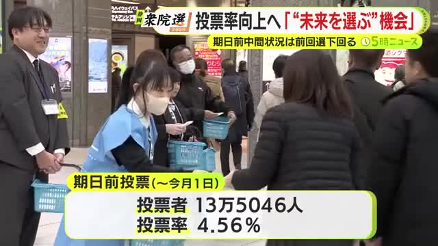 今回の衆院選は解散から投票までが戦後最短で、2月1日までに期日前投票を済ませた人は13万5000人あまりと、2024年の前回と比べ約1万4000人下回っています。