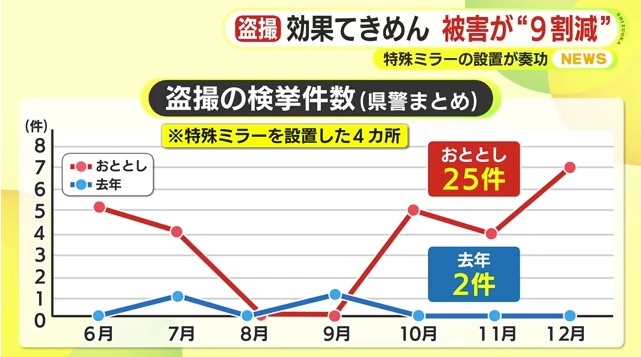 これにより利用者が自身の背後を確認しやすいことから、県警では2025年6月、盗撮事件が起きやすい駅を中心にこのミラーを県内4カ所に設置し効果を検証してきました。