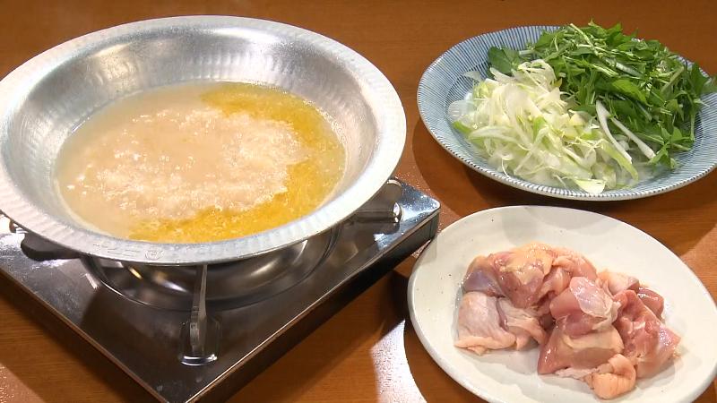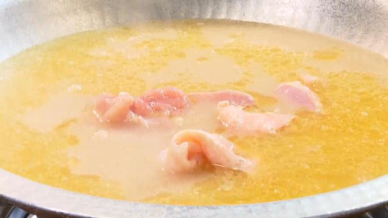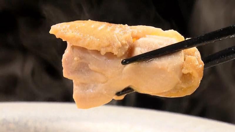 まずは、鶏肉を鍋に入れて、火が通ったら自慢のスープから味わってみましょう。