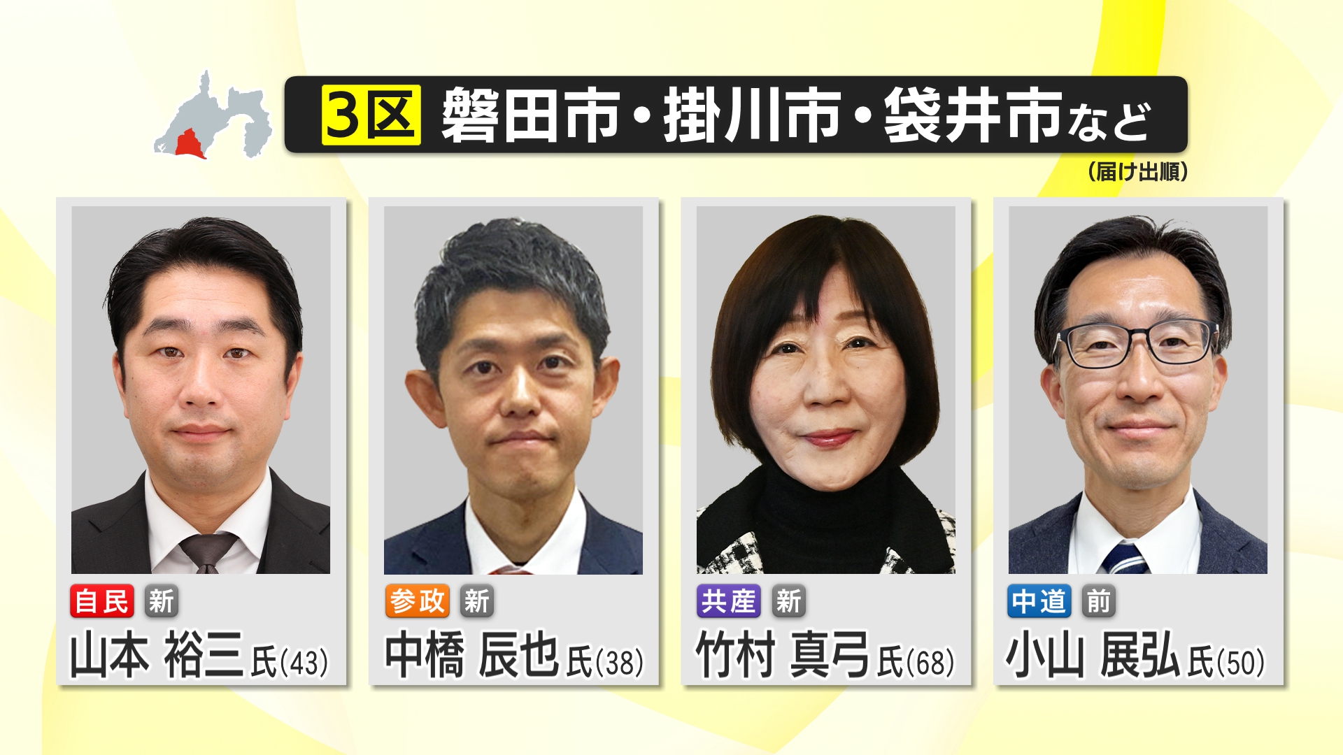 【静岡3区】衆院選開票速報 60年ぶりとなる通常国会冒頭解散に伴う総選挙 午前0時現在
