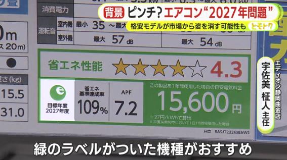 2027年の省エネ基準を満たしているタイプのモデルでだと、一番値打ちなタイプでも15万円前後ぐらいの価格帯。(価格が)上がっている基準としては、省エネ性能を高めるため、コストがかかるので、価格が上がっている