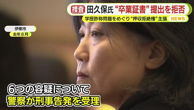 あくまでも押収拒絶権の行使を主張しています。学歴詐称問題をめぐり静岡県伊東市の田久保前市長が警察から求められていた卒業証書の提出について拒絶する回答書を手渡していたことがわかりました。