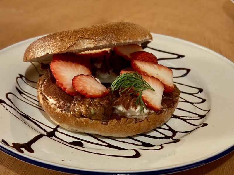 たっぷり使われたイチゴの爽やかな酸味と、甘さ控えめのティラミスがベーグル生地とよく合います。