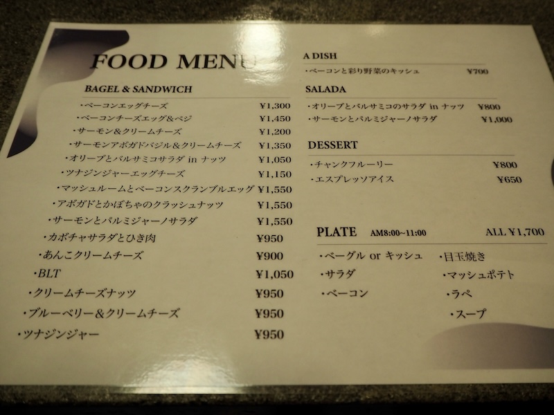 トポロジーコーヒーのメニューは、ベーグル、ドリンク、キャロットケーキやクッキー等の焼き菓子です。
