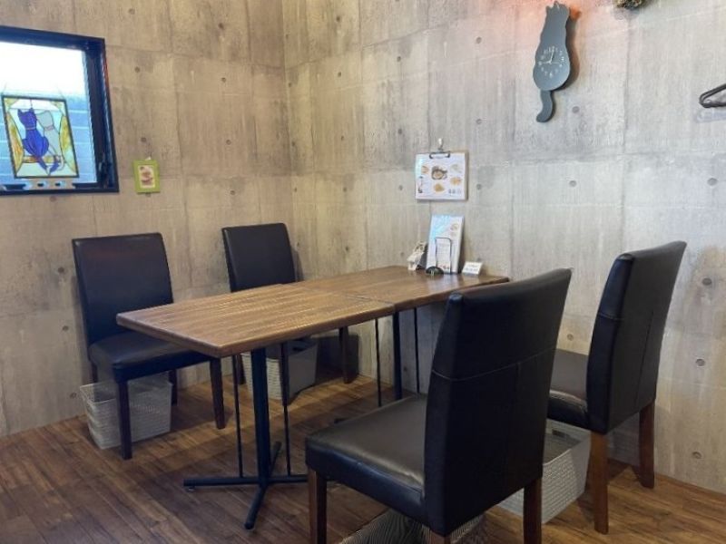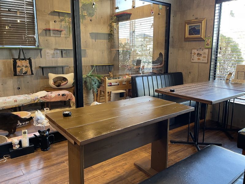 ネコの様子が見える席は、2人席が2テーブル、4人席が1テーブル。