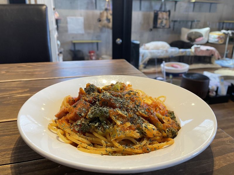 当初は純粋にネコが見られるカフェとしてスタートしましたが、経営を維持するためにパスタメニューを導入し、今ではランチがメインのカフェへと進化しました。