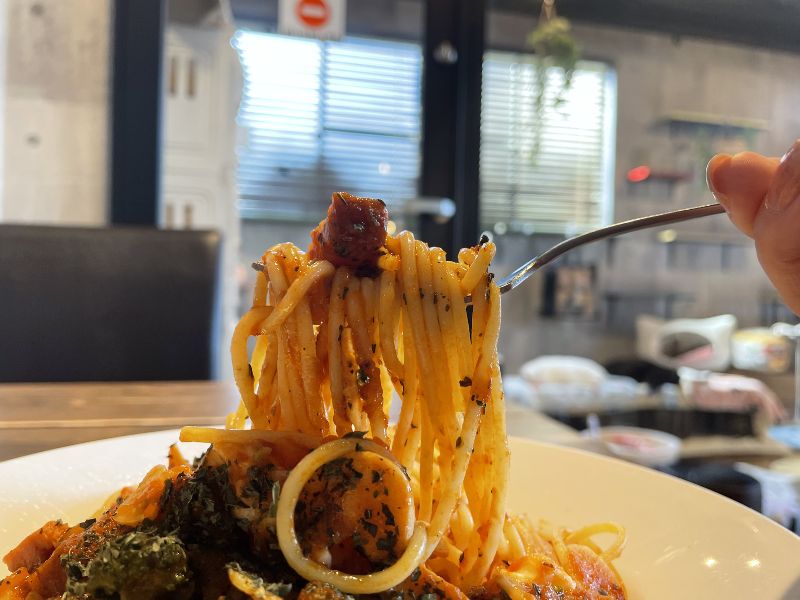 パスタには、イタリア産「バリラNo.5」を使用しています。デュラム小麦を使い、本場イタリアで最も親しまれているスパゲッティの一つ。