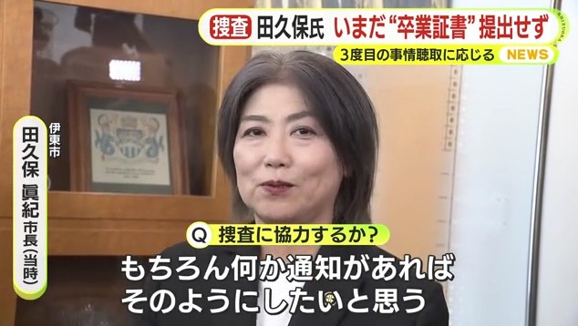 学歴詐称問題に端を発し警察から捜査されている静岡県伊東市の田久保眞紀 前市長が2月17日、3度目の任意聴取を受けました。引き続き、卒業証書の提出には応じていません。