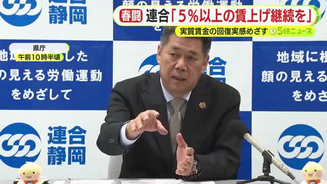 連合静岡の角山雅典 会長は「生活の向上を実感できない人が多い」として、特に中小の事業者には6%以上の引き上げを求めました。