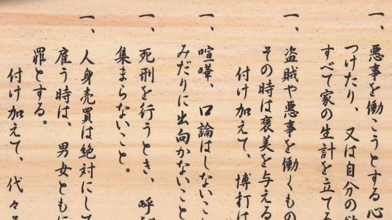 札に書かれていた忠孝奨励諸法度