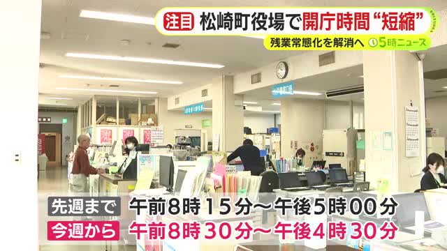 役場では勤務の開始と終了時間が開庁時間と同じで、窓口が開く前と閉まった後に手続きの事務や打ち合わせを行うため、残業が常態化していたのを改めます。