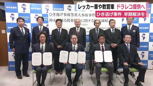 ひき逃げ事件などの早期解決に向け、静岡県警は教習所やレッカー車のドライブレコーダーの映像を活用できるよう事業者の団体と協定を結びました。