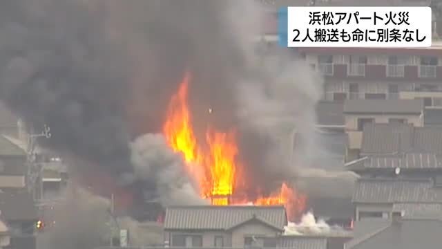3月6日午後、浜松市中央区のアパートで火事があり、高齢男性と成人女性が病院に搬送されましたが、命に別条はないということです。