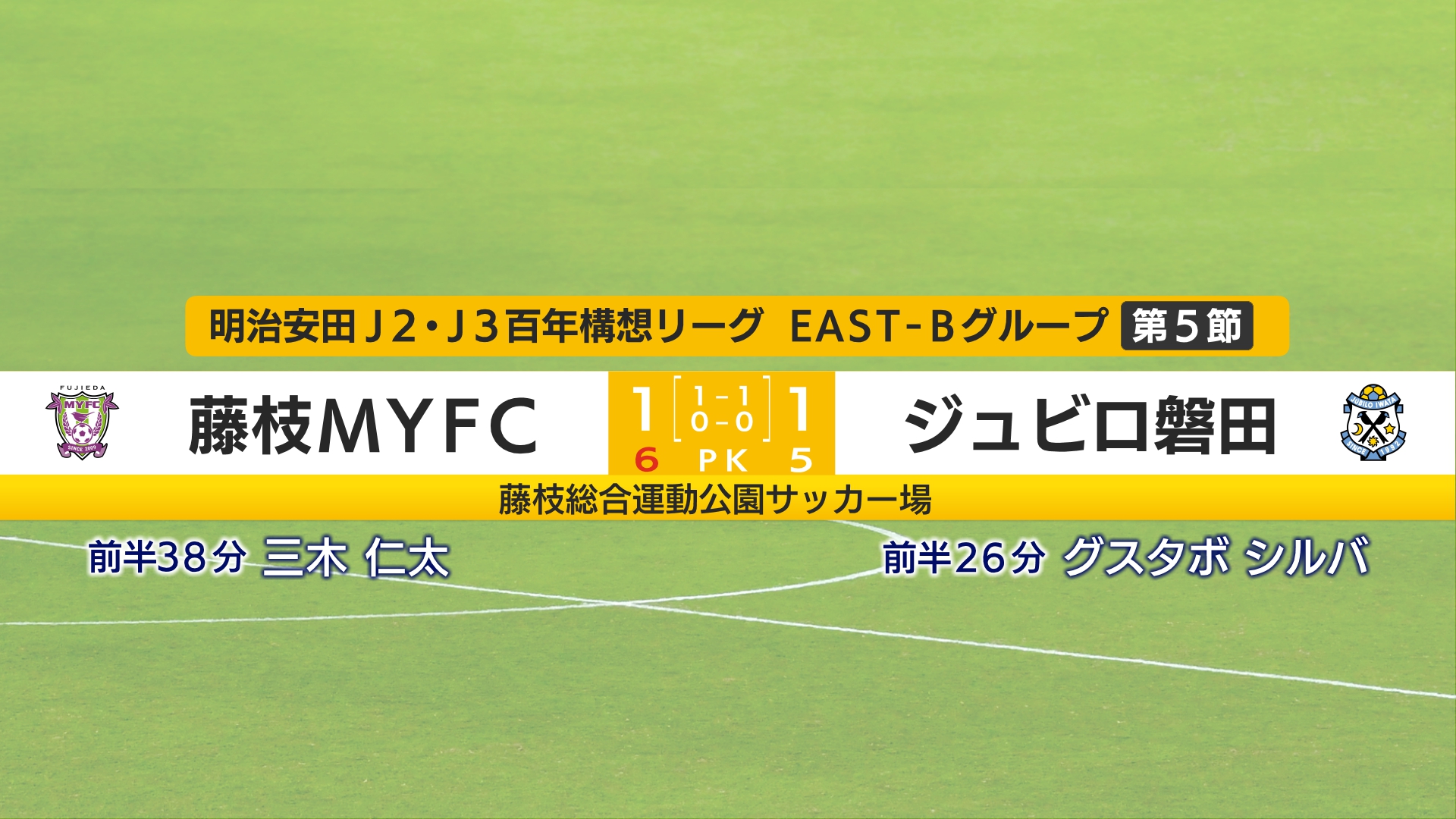 6人目で失敗したジュビロに対しMYFCは全員が成功。勝ち点2を獲得し今シーズン初の連勝です。