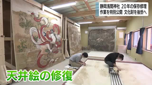 保存・修理のため20年におよぶ事業が進められている静岡浅間神社で作業の様子が公開されました。