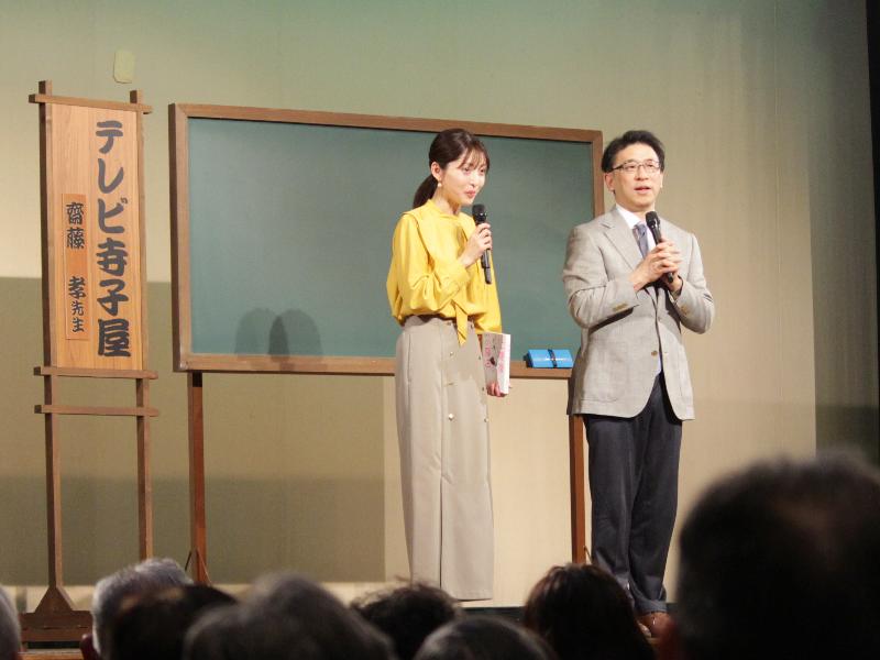 左)テレビ静岡・北村花絵アナウンサー 右)明治大学文学部 教授・齋藤孝さん