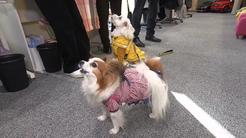 実はこの会社、社員が飼っているワンちゃんとの同伴出社が認められているのです。きょう出社していたひな副部長やラブ部長、松吉くんのほかに4頭の社員犬が在籍しています。