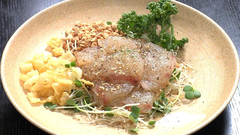 食べると見た目以上の味のハーモニー。新鮮なタイと、薬味などが合わさりとてもいい食感です。