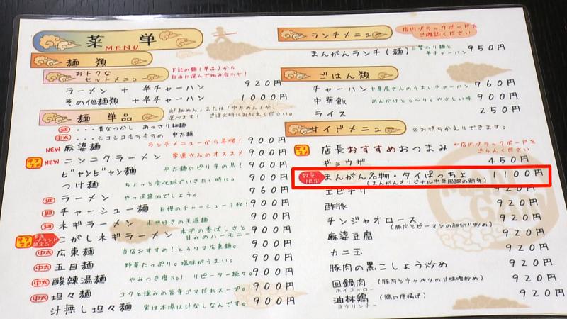 長泉ブランドの「こがしネギラーメン」から個性的な「まんがん名物タイぱっちょ」と、ひとつひとつのメニューにこだわりが詰まった「中華まんがん」。