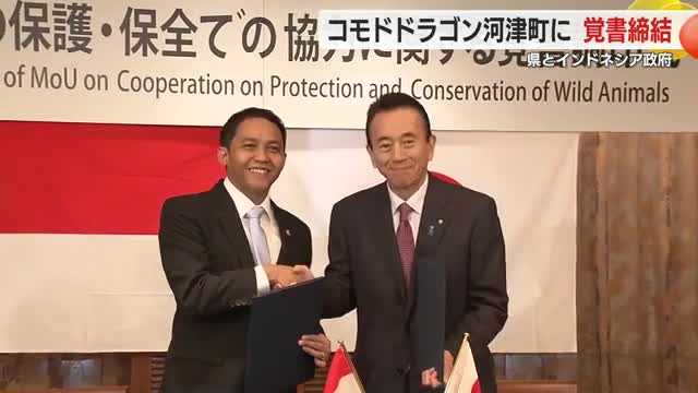 世界最大のトカゲ「コモドドラゴン」の受け入れに向け、静岡県とインドネシア政府が28日、覚書を締結しました。早ければ6月にもコモドドラゴンが河津町の動物園にやってくる予定です。