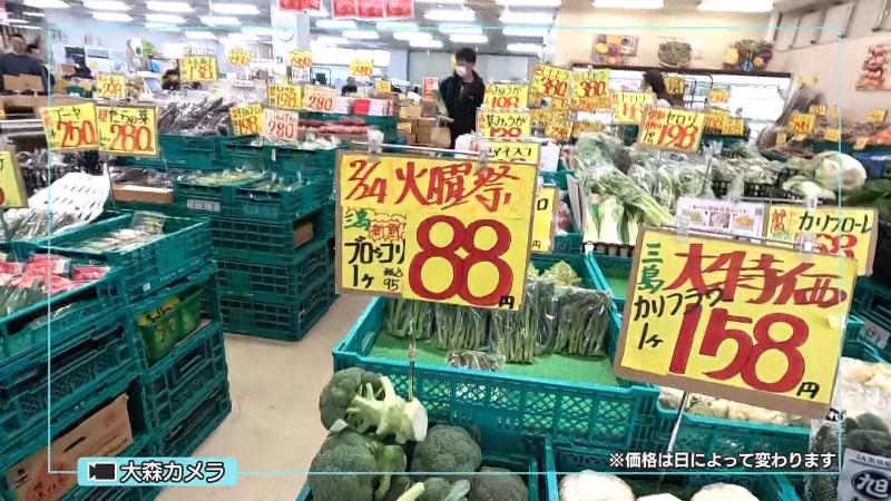 入口近くの青果店「八百はら商店」では、ブロッコリーが95円というお手頃価格で並んでいました。