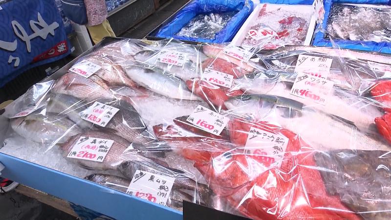鮮魚店の「綾市商店」のこの日の目玉商品は1個500円のマグロのカマ。それに“生きた魚介類”です。