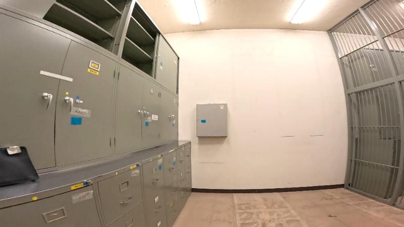 扉の向こうには金属製の収納棚や引き出し式のキャビネットが並んでいました。