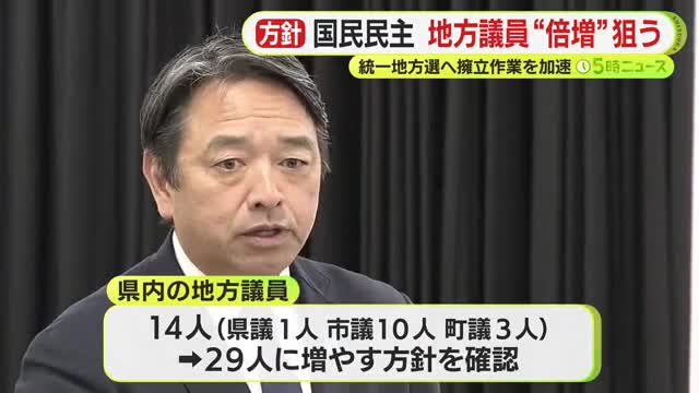 国民民主党の県内の地方議員は県議1人、市議10人、町議3人の計14人で、6日の県連の会合では、2027年春の統一地方選や無所属議員の取り込みで29人に増やす方針を確認しました。