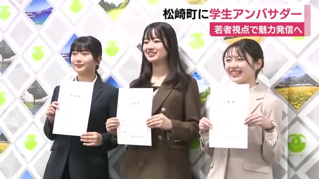 静岡県松崎町の魅力を若者の視点で発信してもらおうと、大学生3人が学生アンバサダーに任命されました。