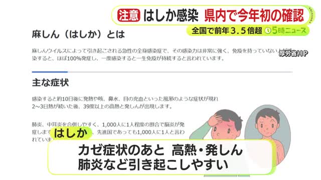 県は特に関東地方でイベントなどに参加した後、1~2週間後に発熱した場合、“はしか”である可能性を伝えた上で、医療機関を受診するよう県民に注意を呼びかけています。