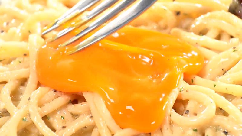具材はベーコンにチーズ、黄身と至ってシンプル。そこにこだわりのオリジナルソースを和えた唯一無二の逸品です。