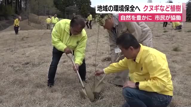 ゴルフ場跡地の環境保全に役立てようと静岡県富士市で市民団体がクヌギなどの苗木を植えました。
