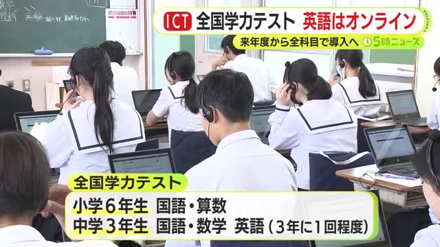 小学6年生と中学3年生を対象にした全国学力テストが静岡県内でも始まりました。英語はタブレット端末を使ったオンライン方式で、2027年度からは全ての教科がオンライン化される見通しです。