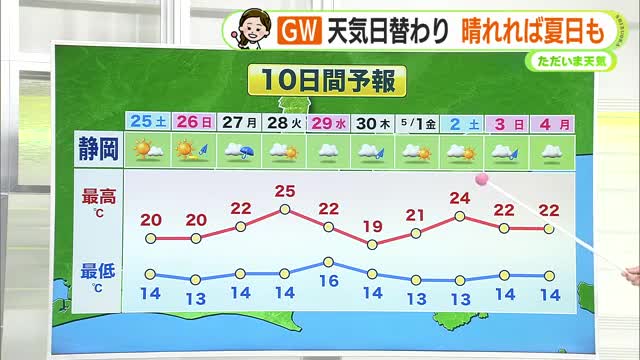 気温は晴れれば25℃超えて夏日となる日がありそうです。