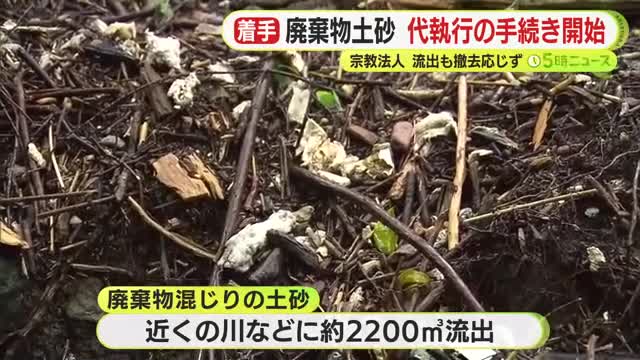 県によりますと、伊豆市の宗教法人・平和寺本山には大量の廃棄物混じりの土砂があり、近くの川など敷地外に約2200立法メートルが流出していることが確認されています。