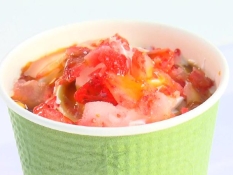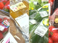 イチゴ、干し芋、青パパイア、トマトの4分割画面