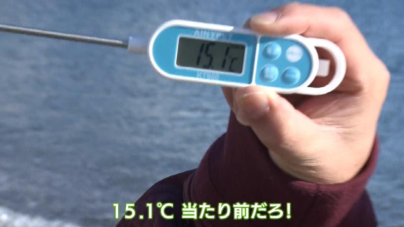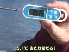 水温計に表示された「15.1度」の表示