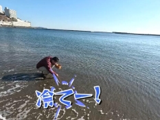 海に入って水温を測るにむらリポーター