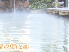 足湯からあがる湯気