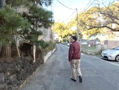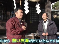 間欠泉から神社に向かって歩くにむらリポーター