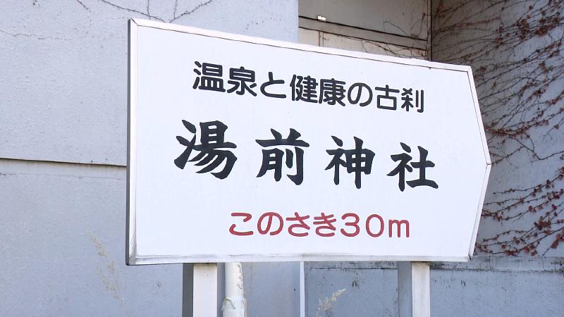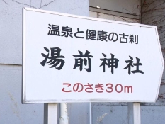 湯前神社の看板「このさき30m」
