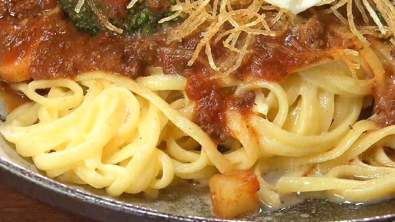 3. 【三島・マリオパスタ】黒毛和牛にチーズがドバッと大量流出! 味変できる新感覚ミートソース